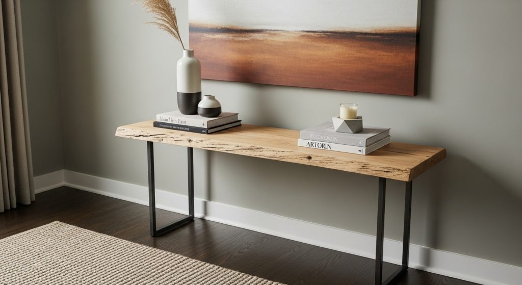 - Live Edge Wood: A console table featuring a live edge slab (where the natural edge of the tree is preserved) offers a beautiful blend of organic form and modern simplicity.